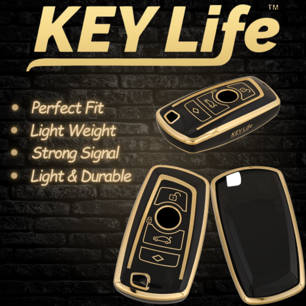 Keylife TPU Key Cover Fit for BMW : X1, X3, X6, X5, 5 Series, 6 Series, 7 Series 4 Button Smart Key